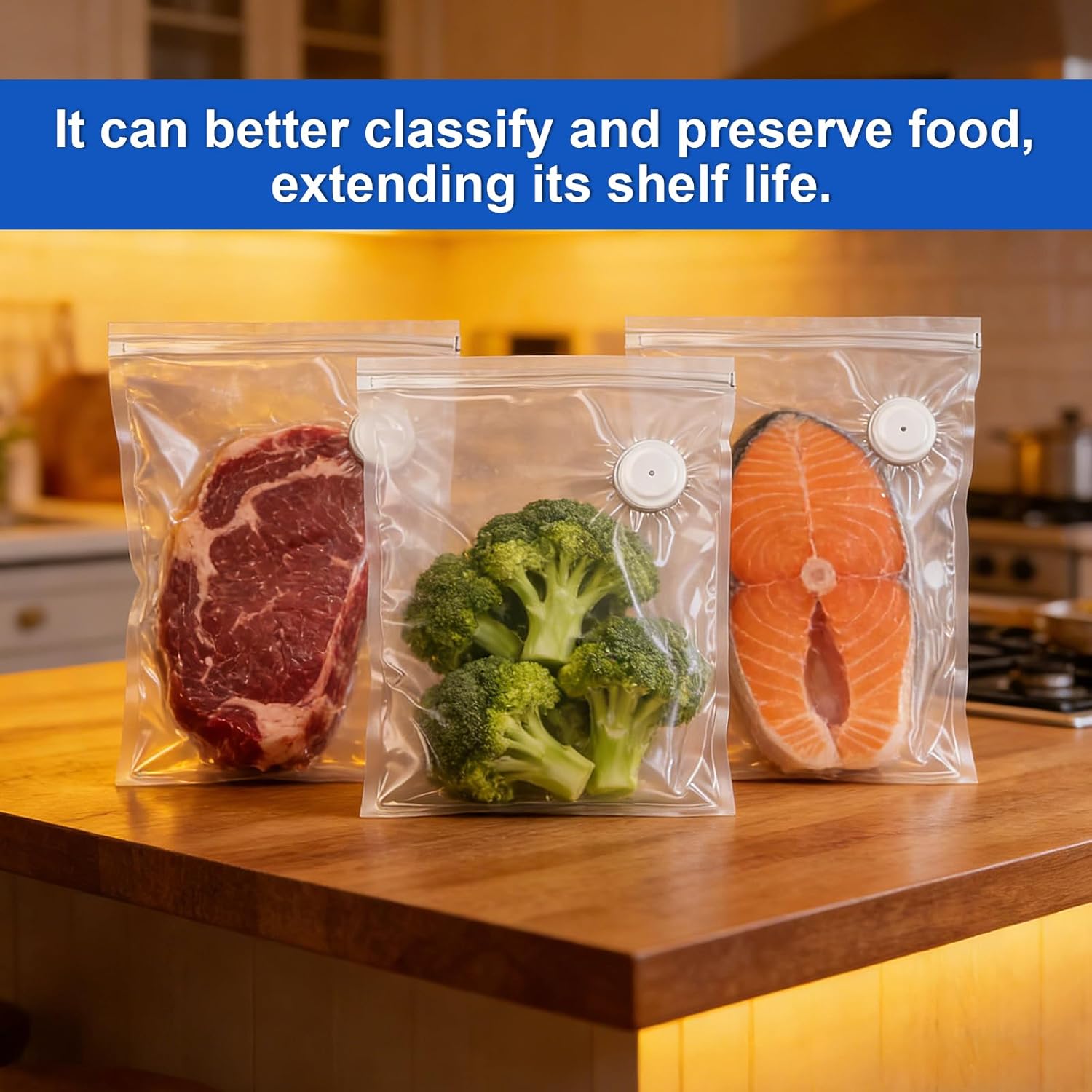 Upgrade your kitchen storage with our reusable food preservation bags! These aren't just ordinary resealable vacuum bags for food; they are your ultimate preserve bags for lasting freshness. Compatible with hand held vacuum sealer bags systems, this value pack includes 60 BPA-free food vacuum bags (20 small 8.5"x8.1" and 20 medium 13.2"x10" and 20 large 13.3"x11.7"). Crafted from durable, thick material, these versatile food saver reusable vacuum bags are your all-in-one solution. They are perfectly safe for freezer storage as food sealer bags for freezer, microwave reheating, and dishwasher cleaning. Ideal for reducing food waste, these food saver reusable bags—also known as food bags sealable with a valve—are a must-have for every modern kitchen