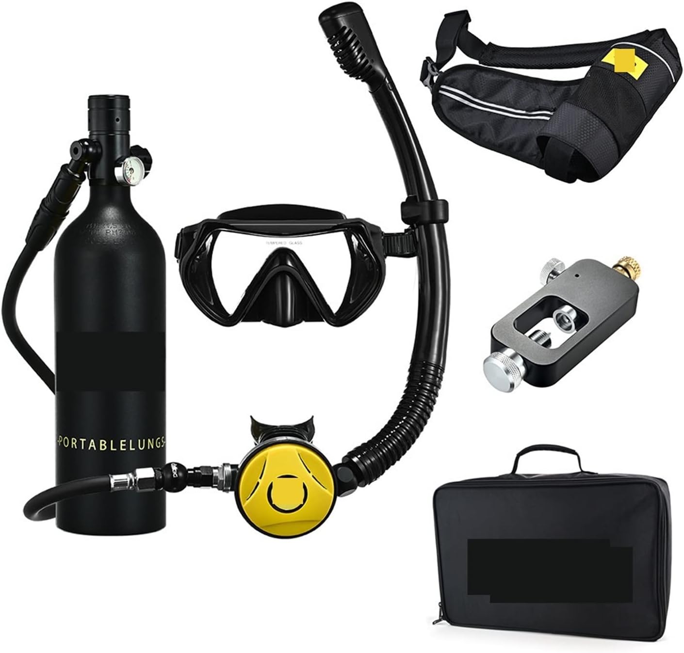 Product Name: 1L Portable Diving RespiratorMaterial: 6061 aviation aluminumMaximum working pressure: 20MPA/200BAR/30OOPSISpecifications: 1LDepth of use: entertainment air source within 10 meters, backup air source within 30 metersUse time: 15~20 minutesUnit weight: 4.4kgProduct size: 45cm * 29cm * 13cmInflation method: electric pump / adapter / high pressure pump