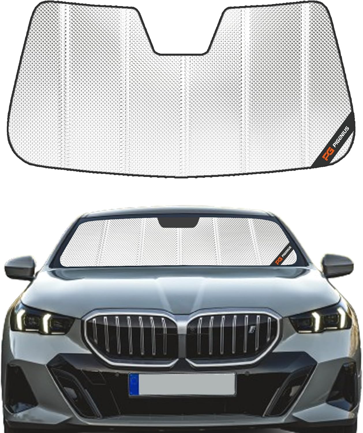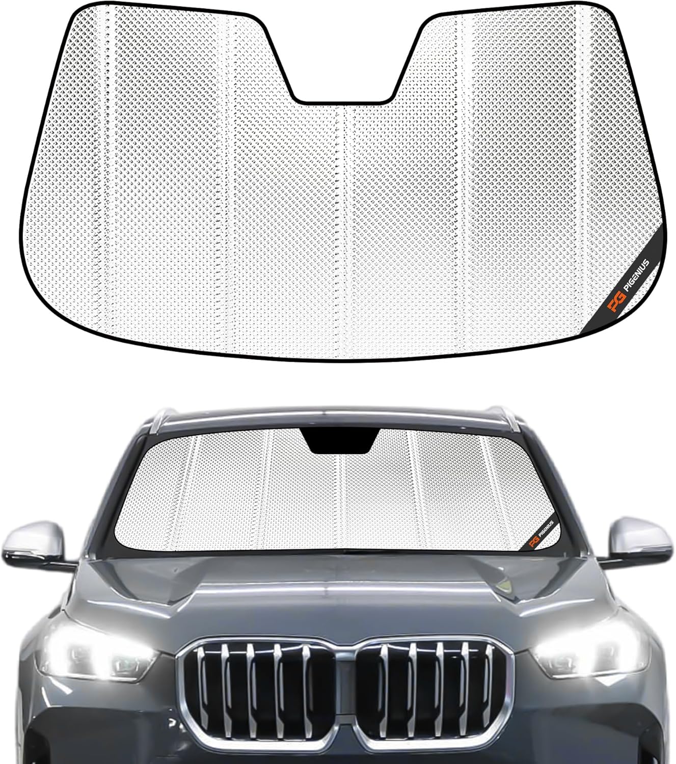 Perfect fit: Get a snug fit with the custom design that matches your vehicle's windshield perfectly. Quality windshield sunshade made with reflective aluminum film material to block out strong sunlight and protect your car interior. High reflectivity feature helps to reduce heat build-up inside the car and improve driving comfort on hot days. High-gloss finish adds aesthetic value to the product and complements the overall look of your car's interior. Choose Pigenius for excellent sun protection and to keep your car cool!